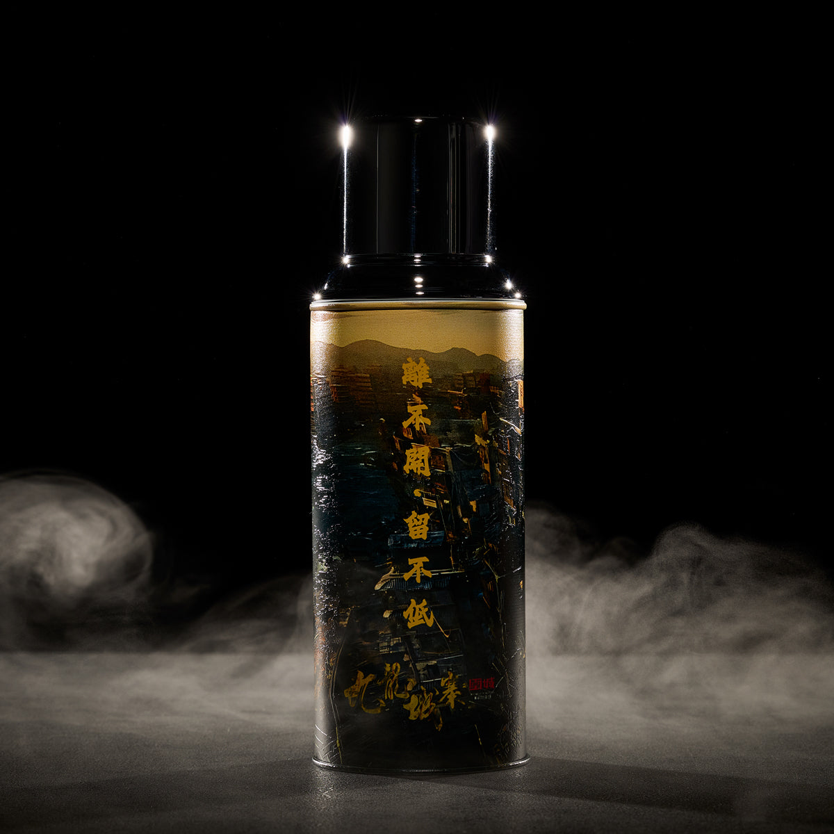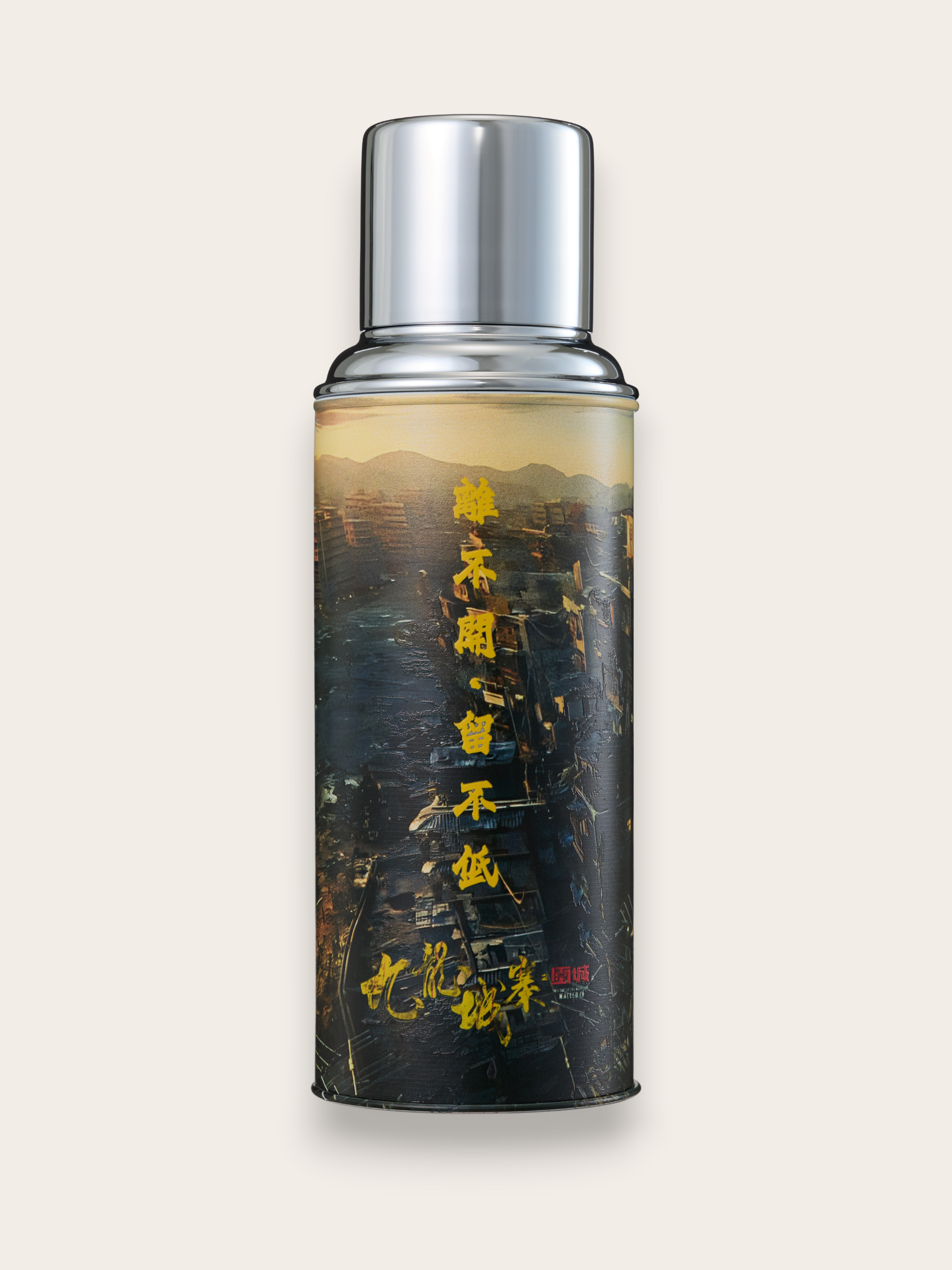 映画『トワイライト・ウォリアーズ 決戦!九龍城砦』(原題:Twilight of the Warriors: Walled In)と、伝説的なスラム「九龍城寨」の世界観をまとった**ガラス内瓶真空断熱ボトル(魔法瓶・水筒)**の公式デザインボトルです。