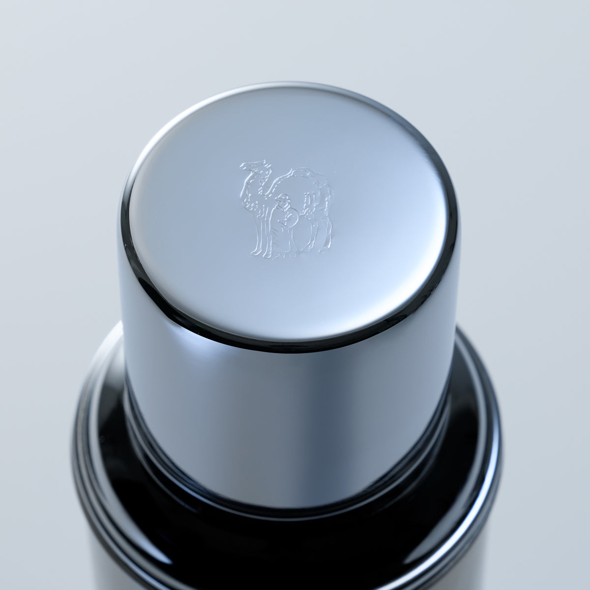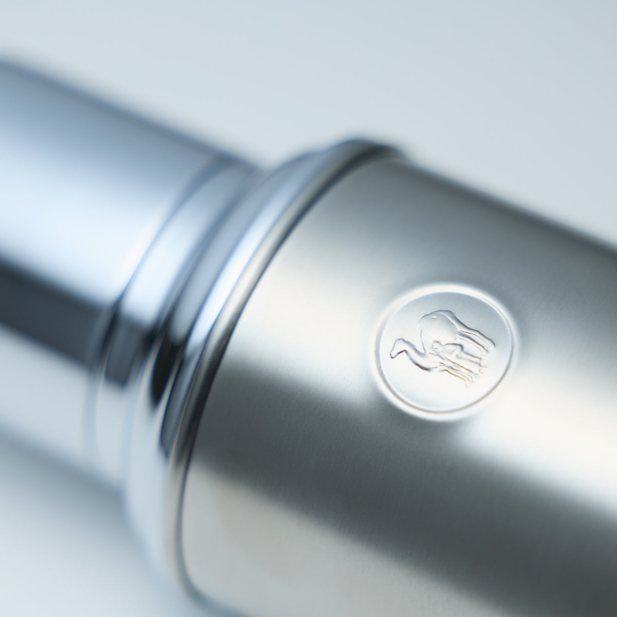 「113」は、ステンレス外装とガラス内瓶を組み合わせた真空断熱ボトル。サテン仕上げのステンレスボディは、ビジネスシーンにも馴染むミニマルなデザインです。