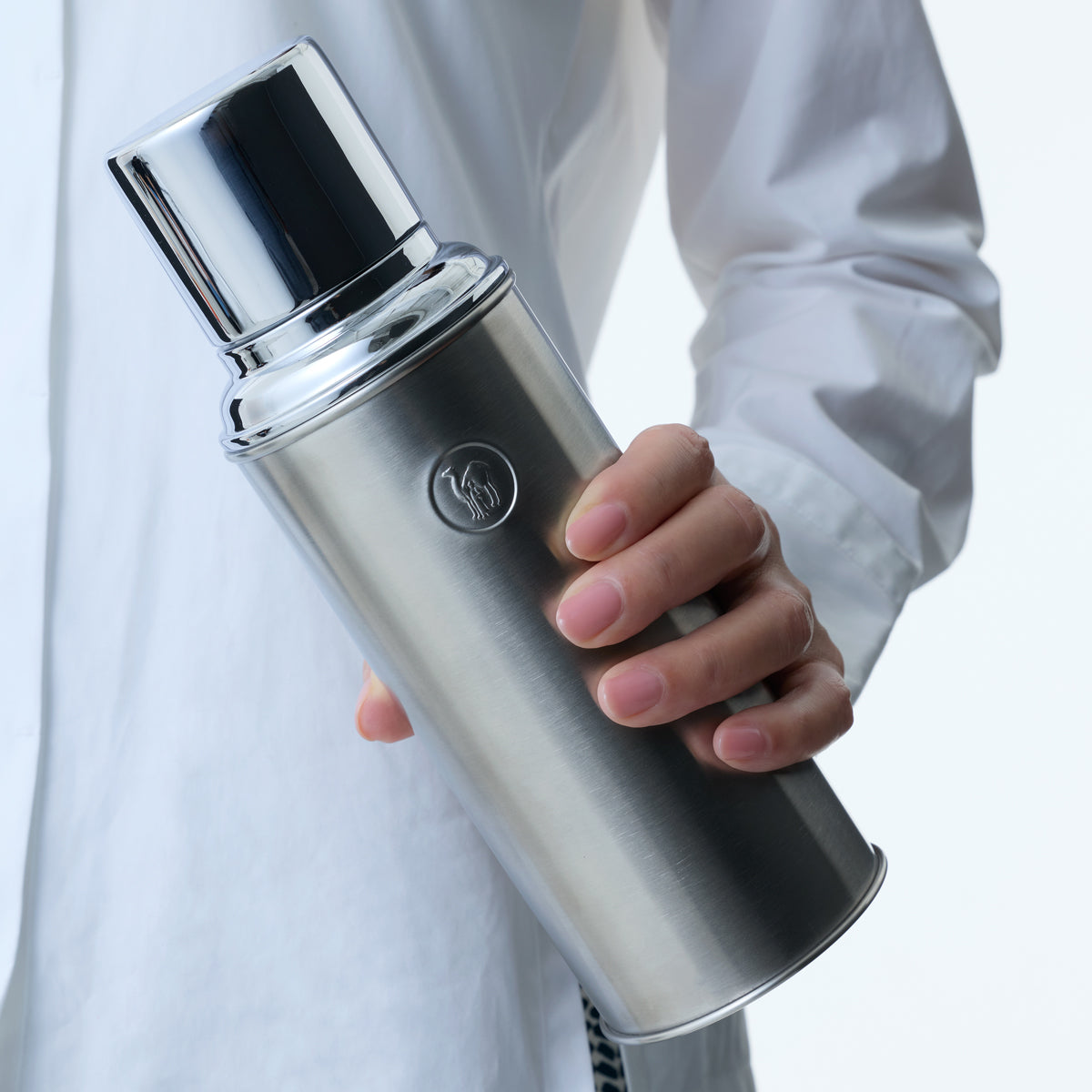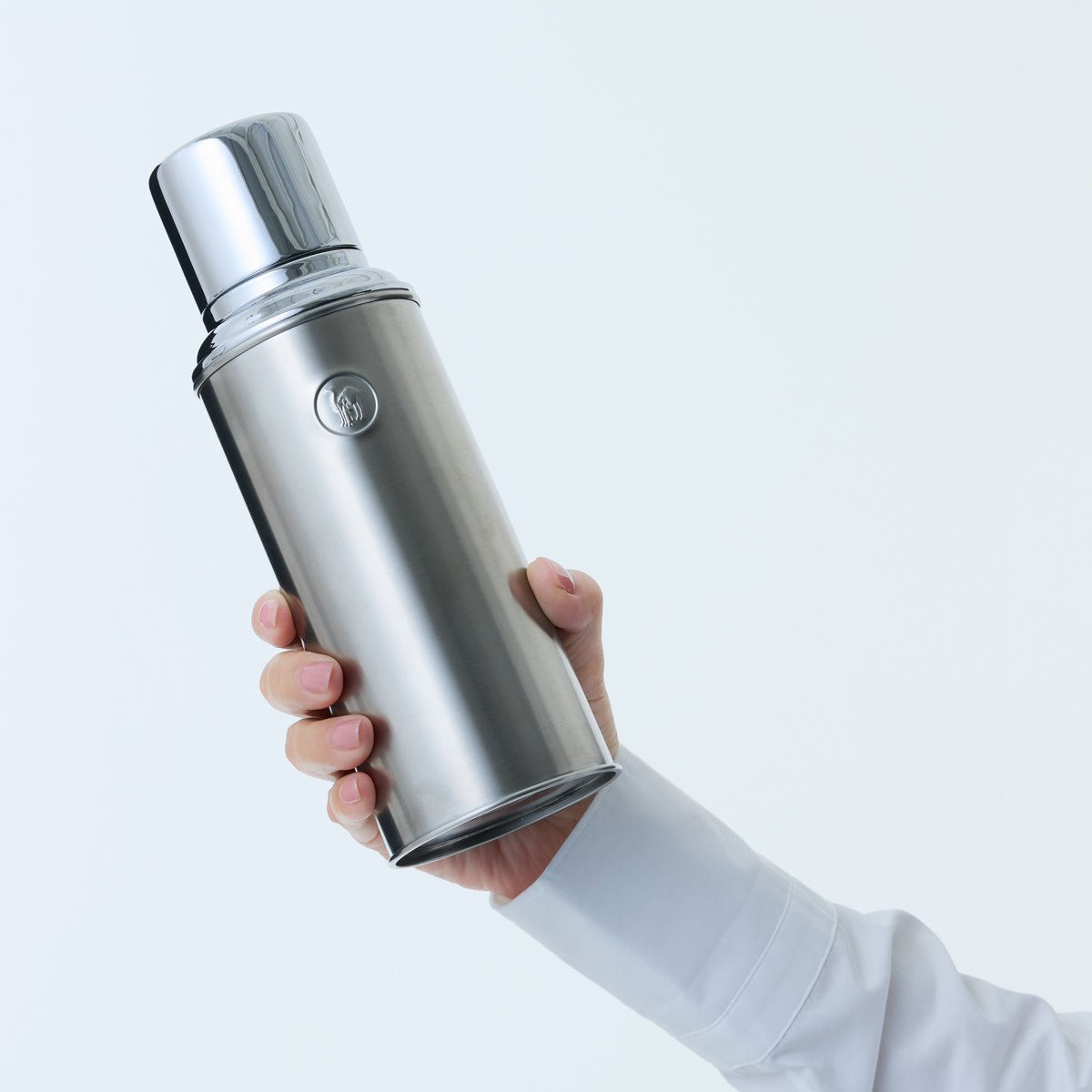 香港工場の手作業工程を含むMade in HONG KONGモデル。ステンレス魔法瓶の実用性と、ガラスならではのクリアな口当たりを両立した1本です。