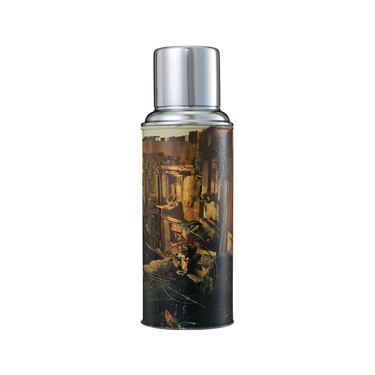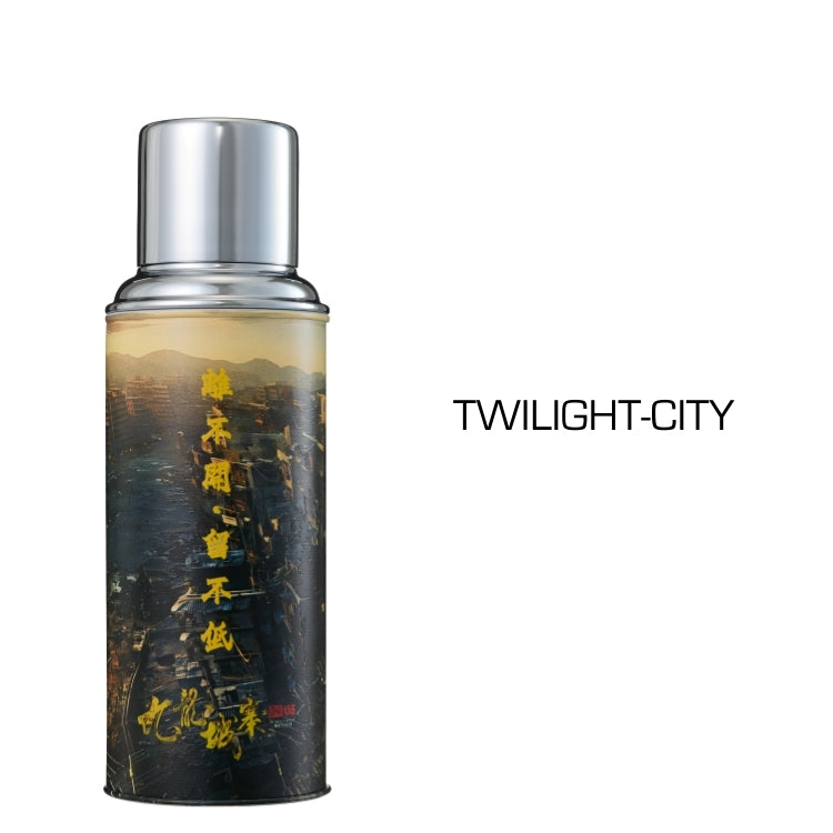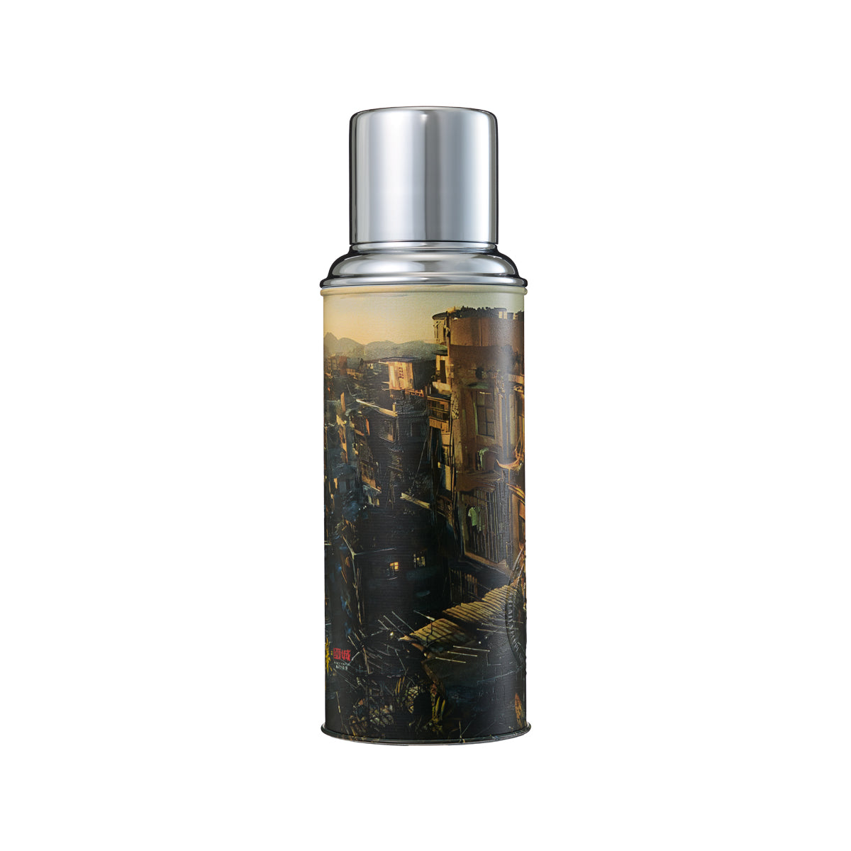映画『トワイライト・ウォリアーズ 決戦!九龍城砦』(原題:Twilight of the Warriors: Walled In)と、伝説的なスラム「九龍城寨」の世界観をまとった**ガラス内瓶真空断熱ボトル(魔法瓶・水筒)**です。